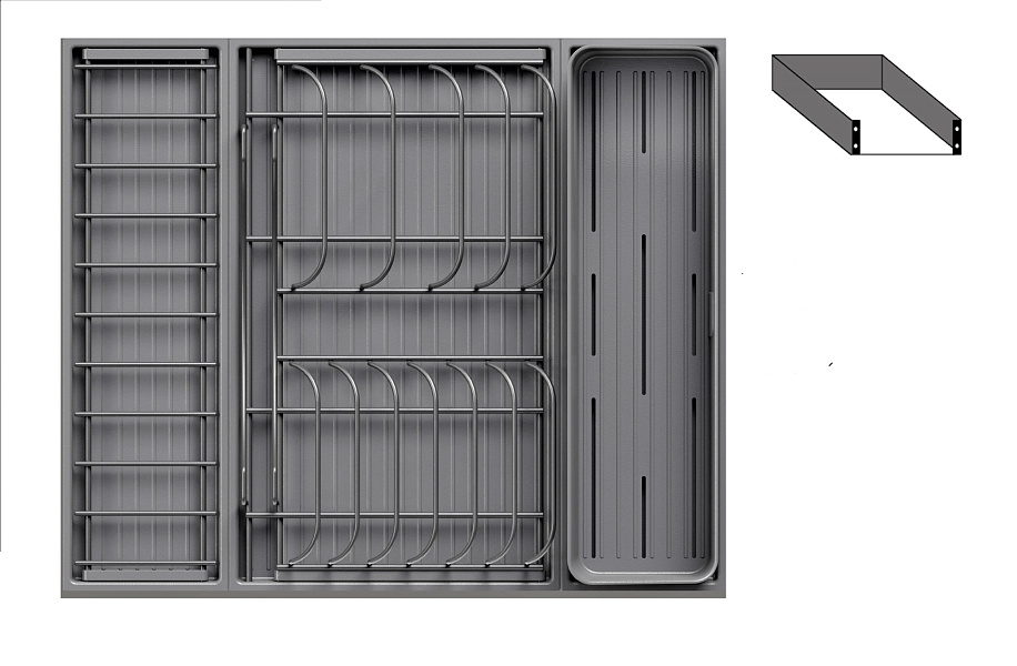 Модель — 1 большой модуль для посуды + 1 малый модуль с решеткой + модуль для столовых приборов