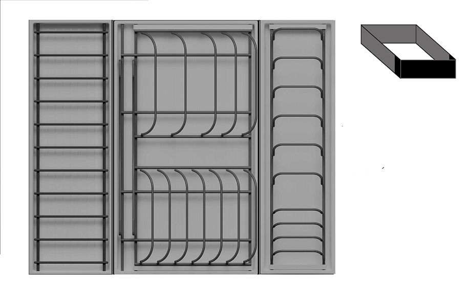 - 1 большой модуль для посуды + 1 большой модуль с решеткой + модуль для столовых приборов