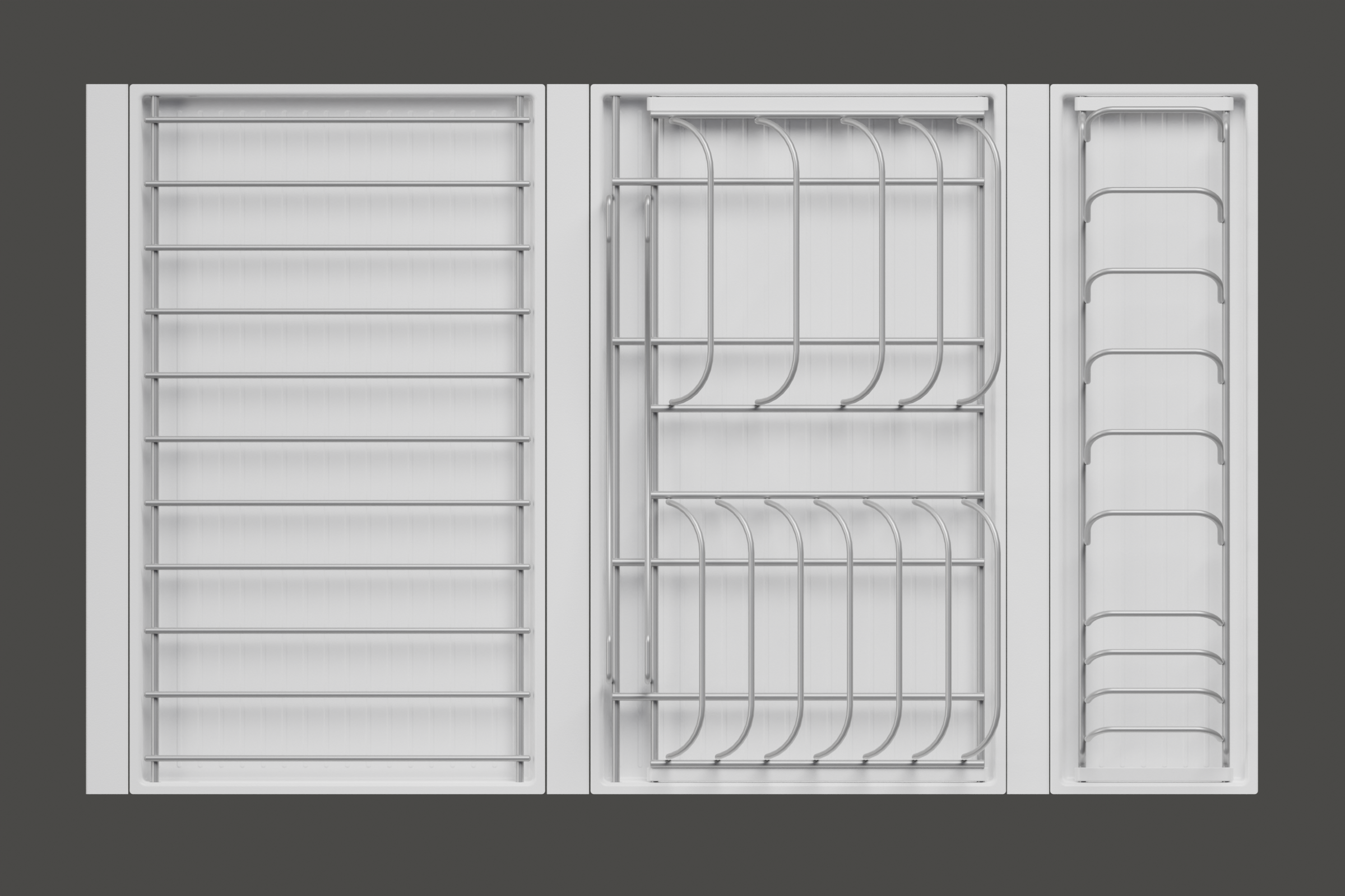 • 1 большой модуль для посуды + 1 большой модуль с решеткой + 1 малый модуль для посуды
