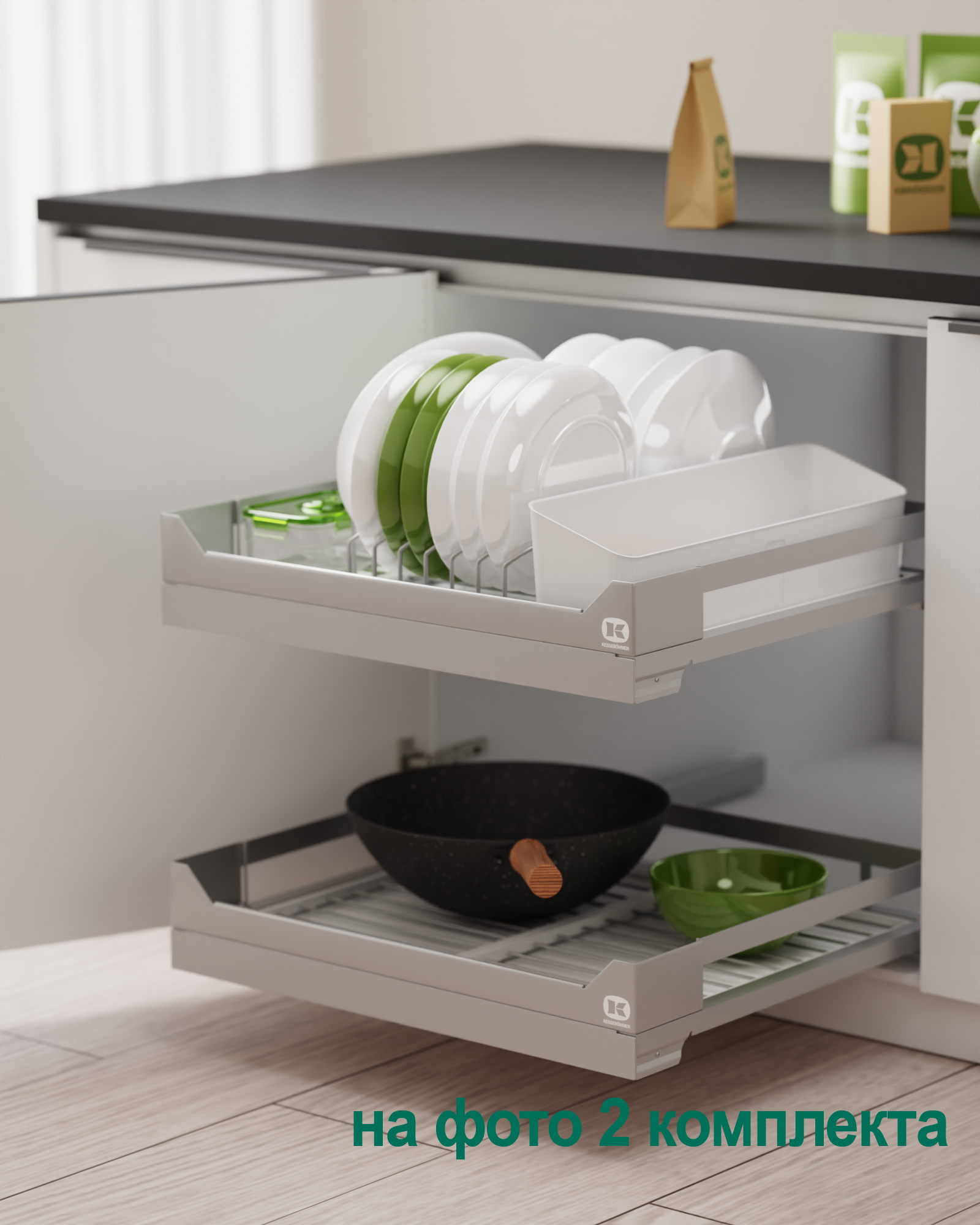 1 для посуды большой (423 x 248 мм, состоит из 1 х держатель металлический, 1 х поддон пластиковый, 2 х защелка-ограничитель)