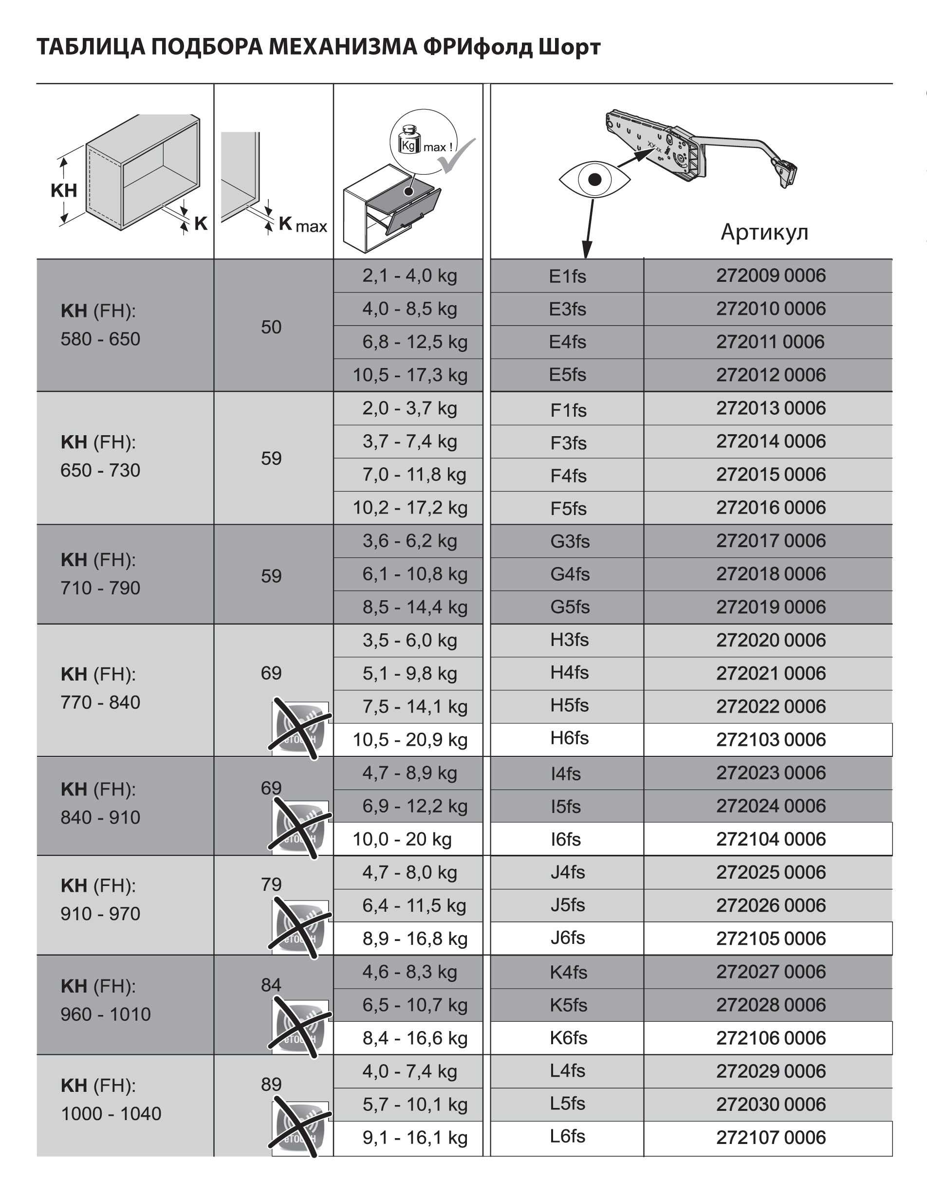 Подъемник ФриФолд Шорт K5fs H960 - 1010 мм 6,5-10,7 кг без крышек, без петель