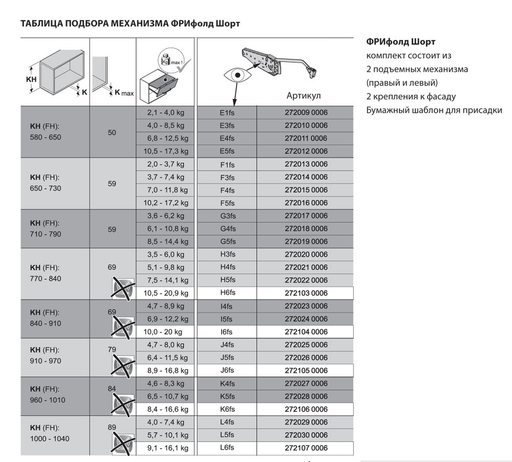 Подъемник ФриФолд Шорт L5fs H1000-1040 мм 5,8-10,2 кг без крышек, без петель