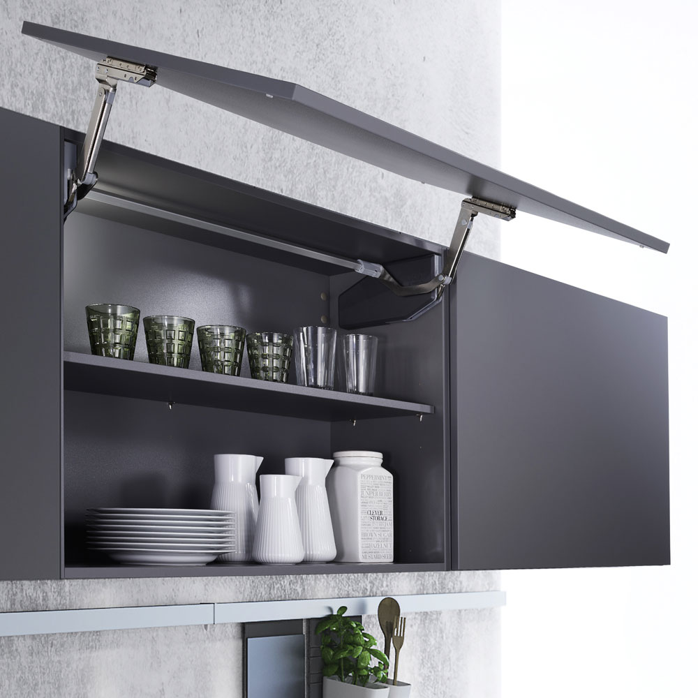 Подъемный механизм для кухни: диагональный подъем FREEswing от Kessebohmer для тяжелых фасадов до 17 кг