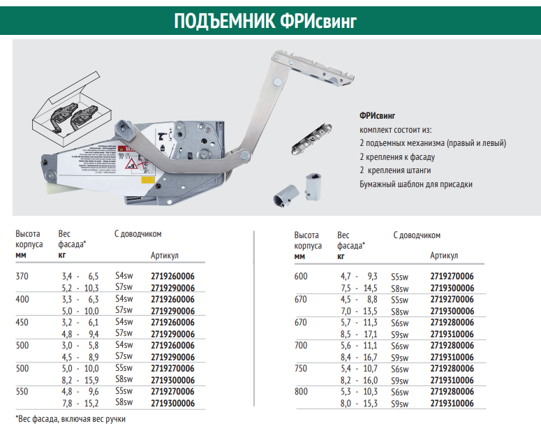 Подъемник ФриСвинг S6sw H670 - 800 мм 5,3-11,3 кг без крышек, без штанги