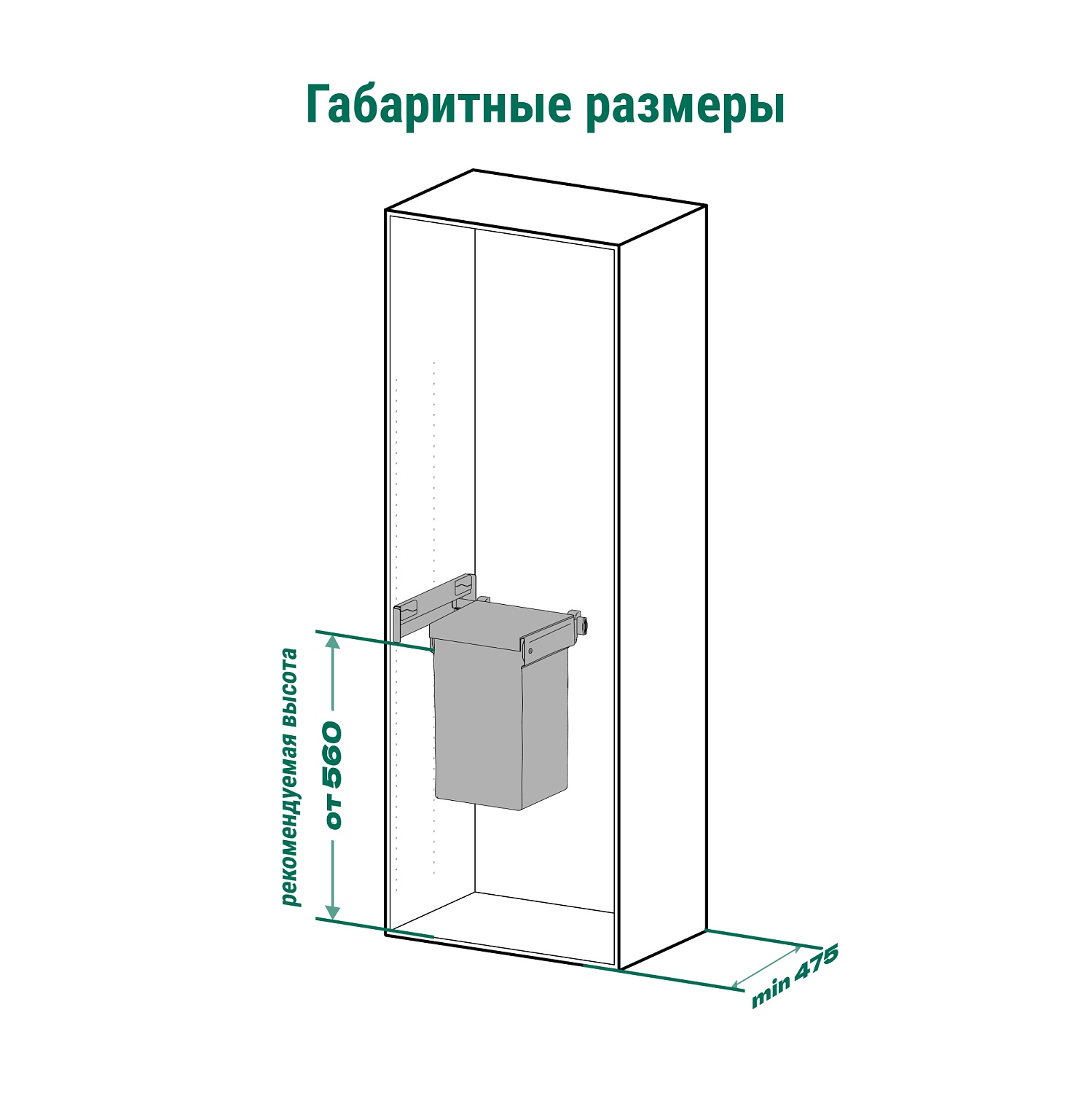 Комплект односторонний выдвижной с широким мешком для белья Конеро W 457 мм D 475 мм 1 мешок 2 вешалки-держателя цвет комплекта ЧЕРНЫЙ Kessebohmer | официальный магазин