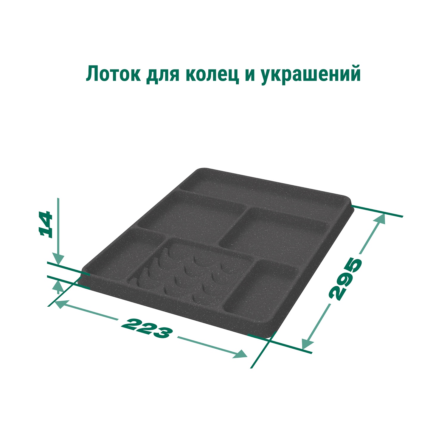 —Лоток для колец и украшений 6 ячеек в полку Конеро D 345 мм цвет ЧЕРНЫЙ
